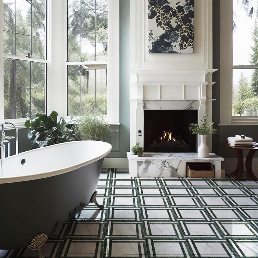 Dolomite White Green Marble Frame Mosaic Tiles