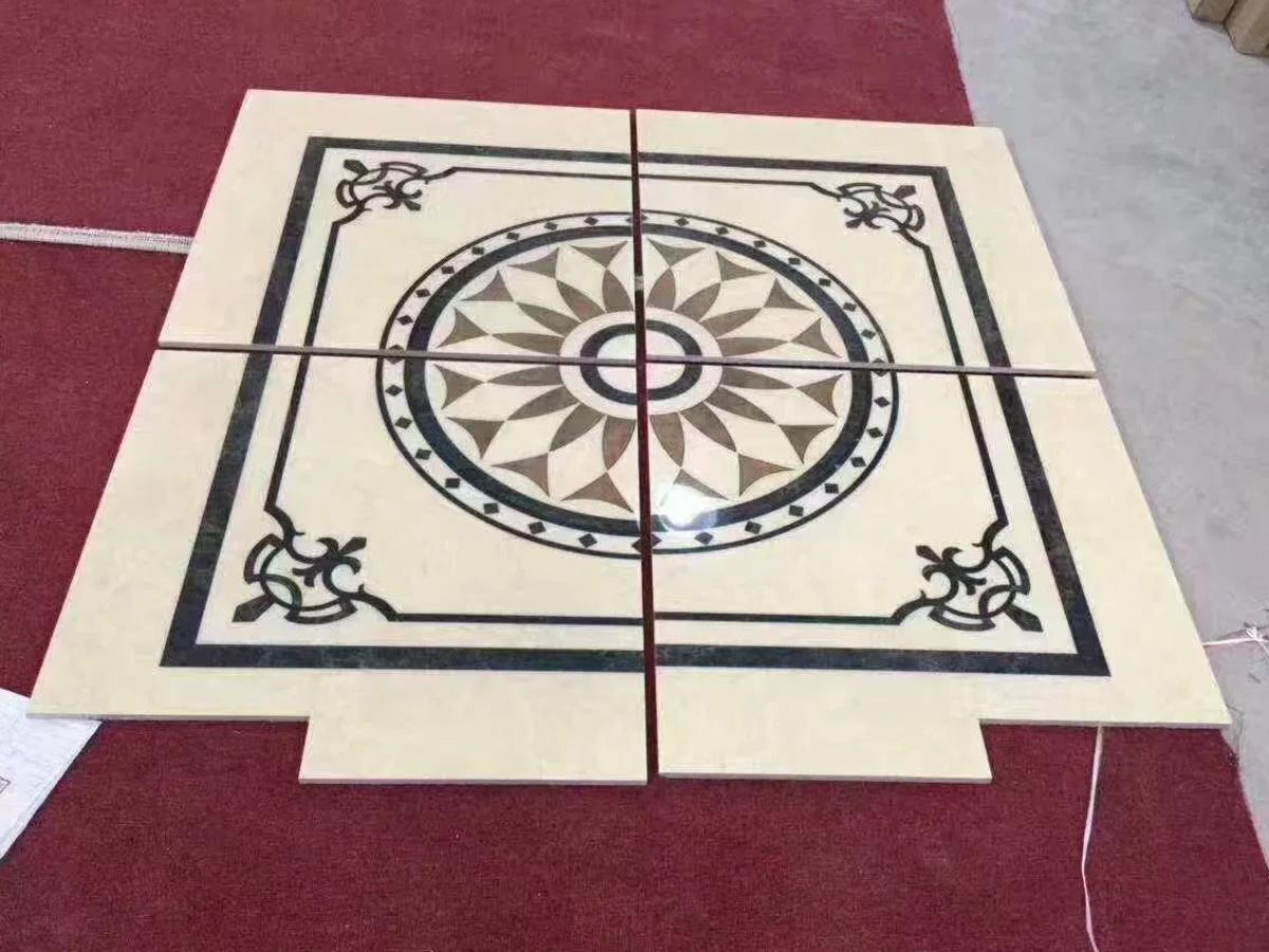 Square Crema Marfil Marble Water-Jet Medallion Tile