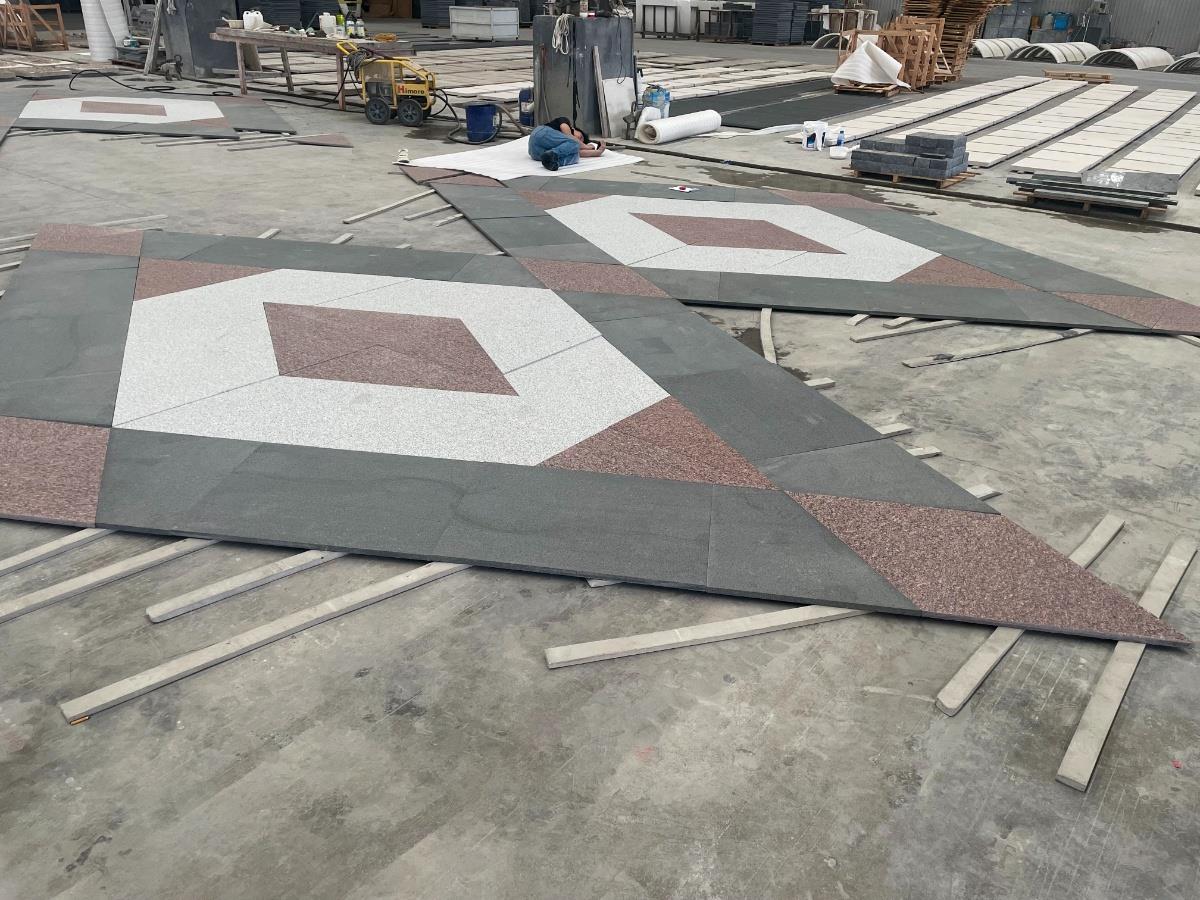 India Red & Black Basalt & G603 Mosaic Cobblestone Paver