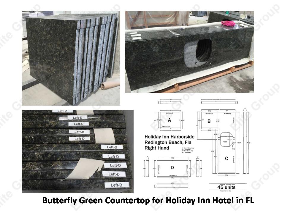 Butterfly Green granite countertop for USA holiday inn hotel resort