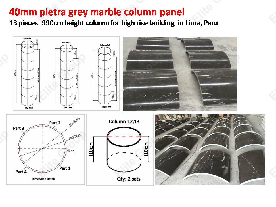 Pietra grey marble column panel for high rise building in Lime Peru